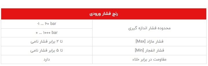| محدوده اندازهگیری | 60 … 1- بار و 1000 … 0 بار |